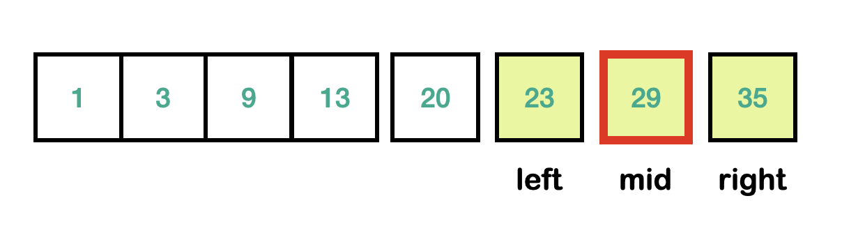 (이렇게 때문에 정렬되어 있을 경우에만 사용 가능한 것임!! 오른쪽엔 mid 보다 큰 값들만 들어있을테니!!)