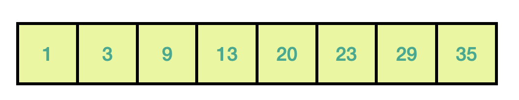 만약 다음과 같이 오름차순으로 정렬된 배열이 있을때,
