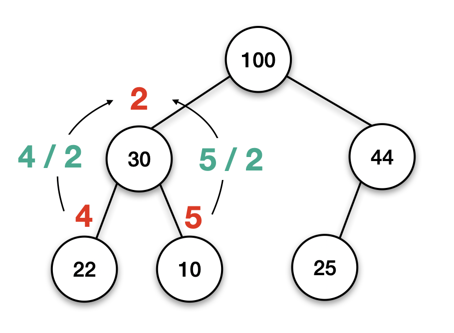 부모 노드의 인덱스 번호 = 자식 노드의 인덱스 번호 / 2