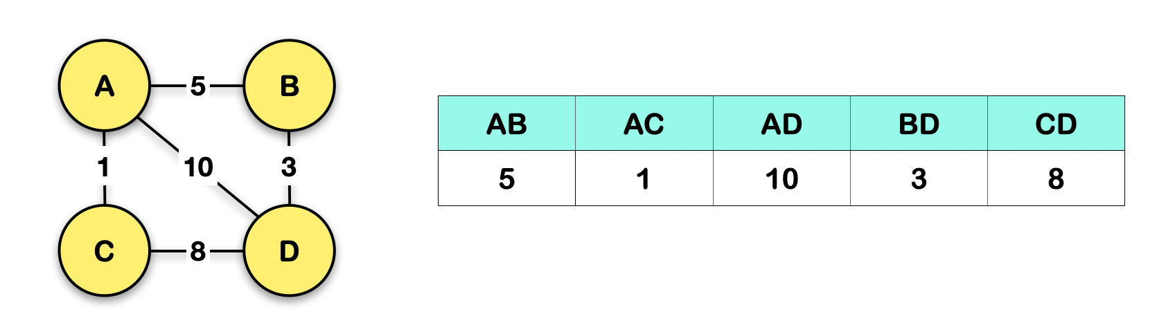 let vertices = ["A", "B", "C", "D"]