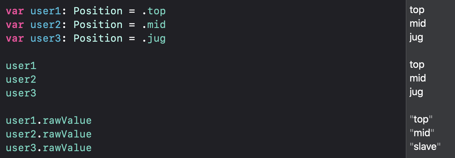 대신 Raw Value가 없는 case는, 바로 이전 case의 Raw Value에서 +1한 값으로 셋팅됨!!