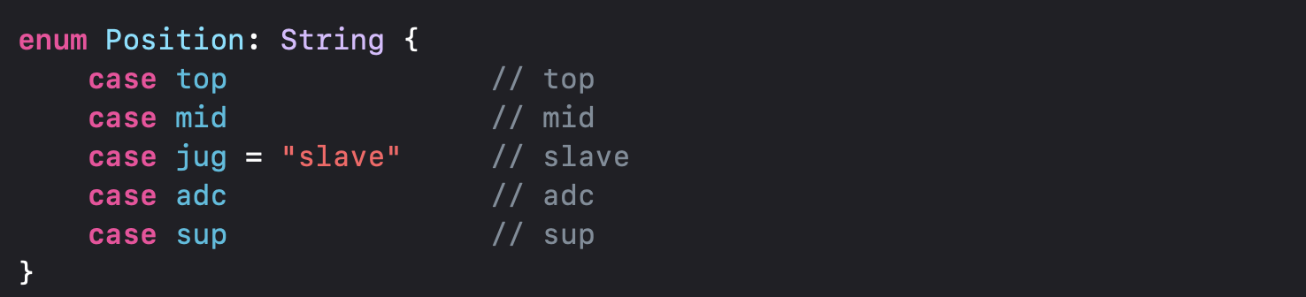 근데 사실 이 case에 원시값을 지정해줄 수도 있는데, 이를 Raw Value라고 함