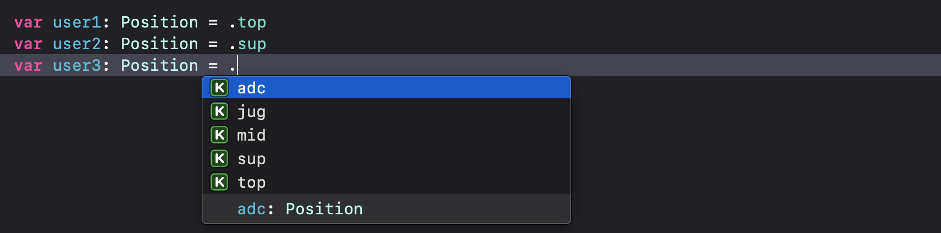위처럼 .(점문법)을 이용해 내가 선언한 case에 한해서만 접근할 수 있음!!!
