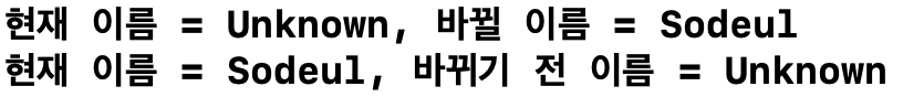 따라서 아직 name의 값은 Sodeul로 변경되기 전이기 때문에,