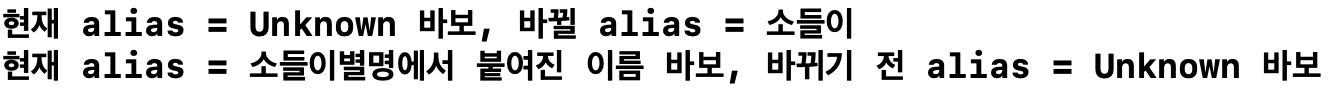 print("현재 alias = \(alias), 바뀔 alias = \(newValue)")