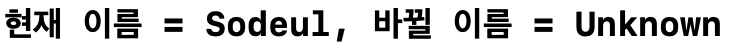 현재 이름(name)은 변경된 값인 "Sodeul"이고,