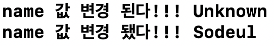 print("name 값 변경 됐다!!! \(oldValue)")
