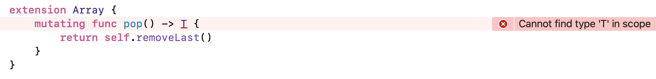 extension에서 구현된 pop이란 메서드를 사용할 수 있지만,
