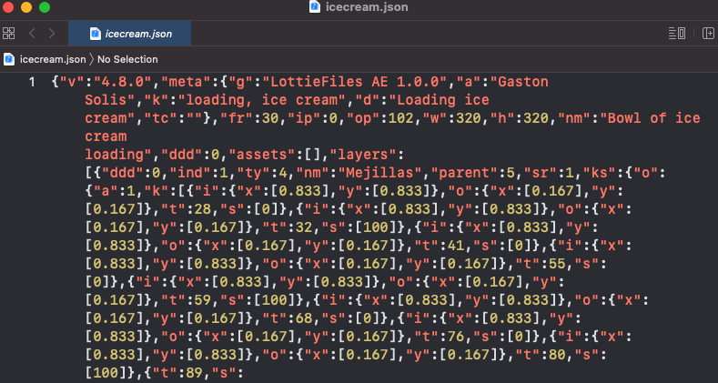 다만, 위는 gif라는 형식의 애니메이션이지만, Lottie는 JSON 형식을 이용해서 애니메이션을 나타냄