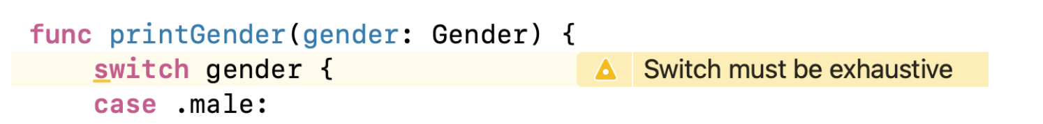 switch gender { //Switch must be exhaustive