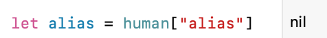따라서 human["alias"]의 리턴 값은 옵셔널 자료형인 거고,