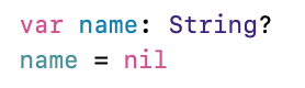 ?로 선언된 name엔 nil 값을 저장할 수 있음
