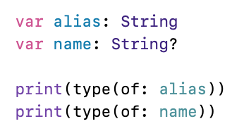 그리고 이를 Optional String Type (옵셔널 스트링 타입) 이라고 부름