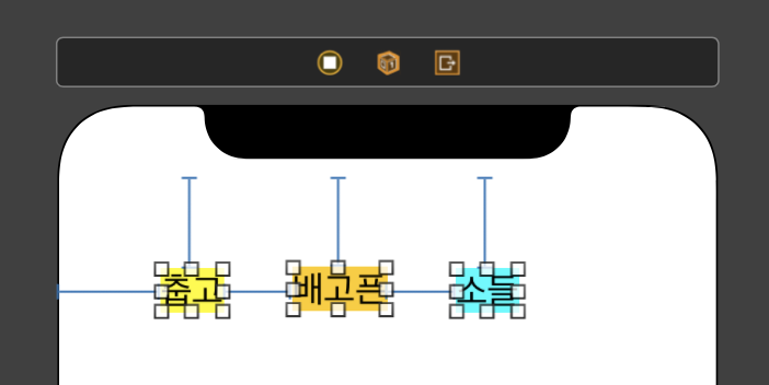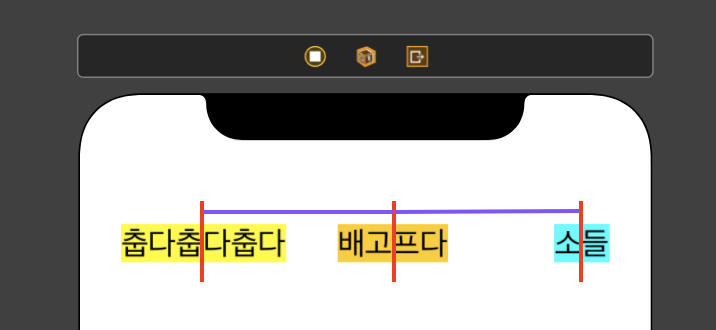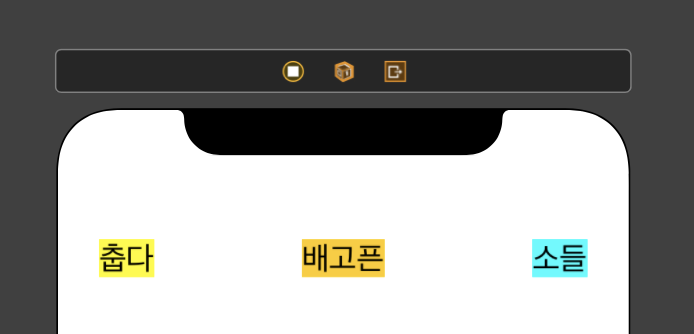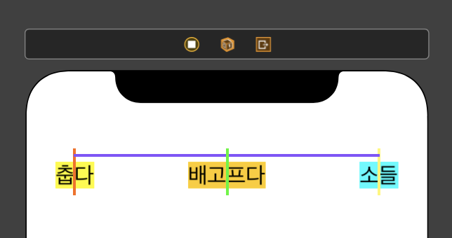이렇게 3개의 "뷰(Label)"들을 위처럼 한줄로(vertical) 나란히 정렬하고 싶을 때