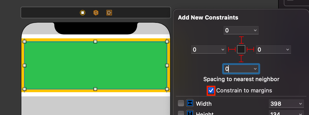 (참고로 노란 뷰는 Constrain to margins를 체크하지 않음)