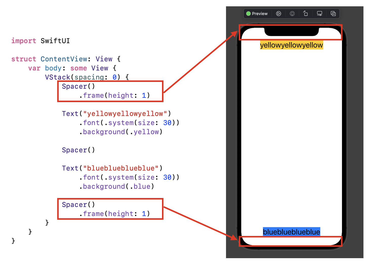 이렇게 가장 위 / 아래에 height가 1인 Spacer를 추가해주면,