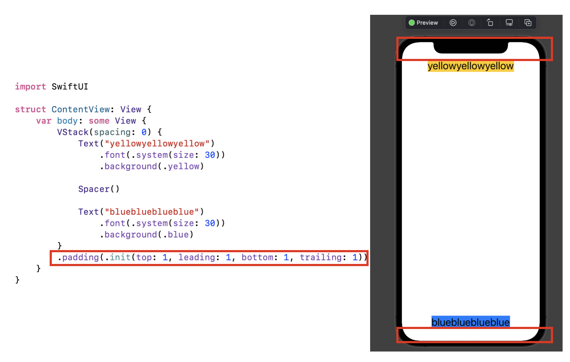 이런 식으로 VStack에 padding modfier를 추가해주면,