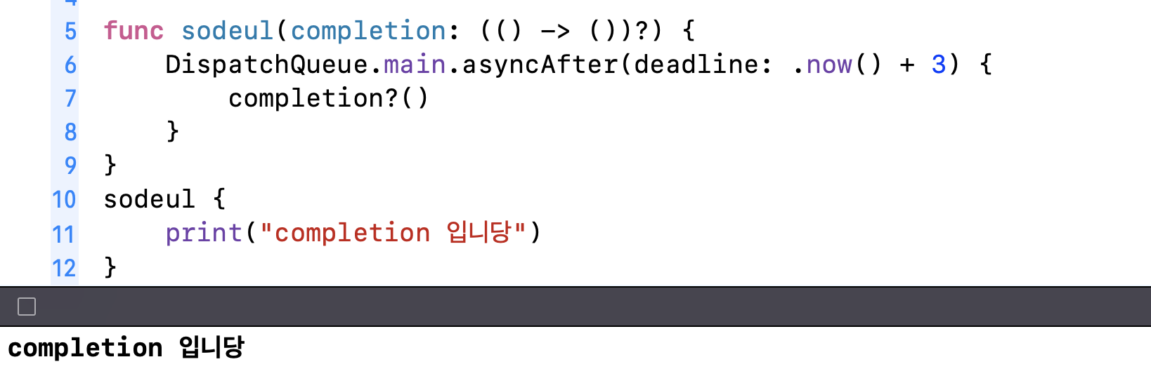 func sodeul(completion: @escaping () -> ()) {