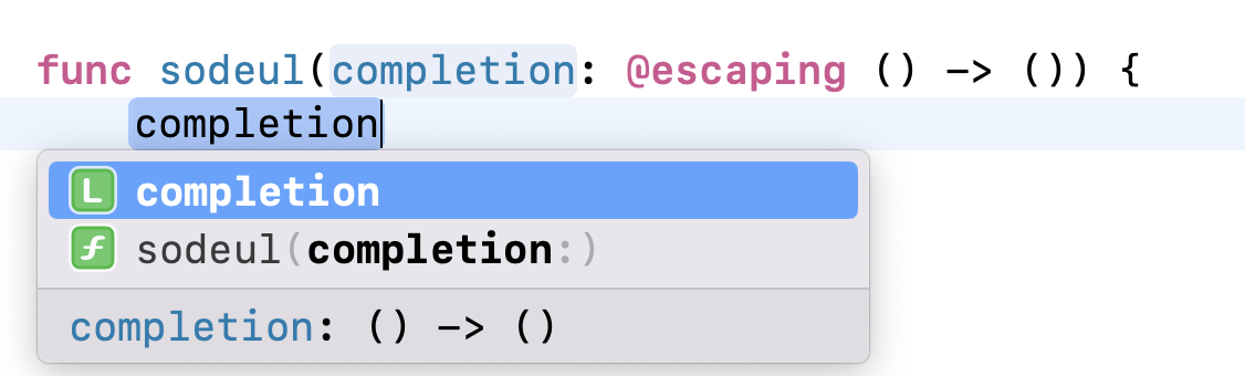 sodeul이란 함수 내부에서 completion이란 매개상수로 저장되어 사용 되잖음!?