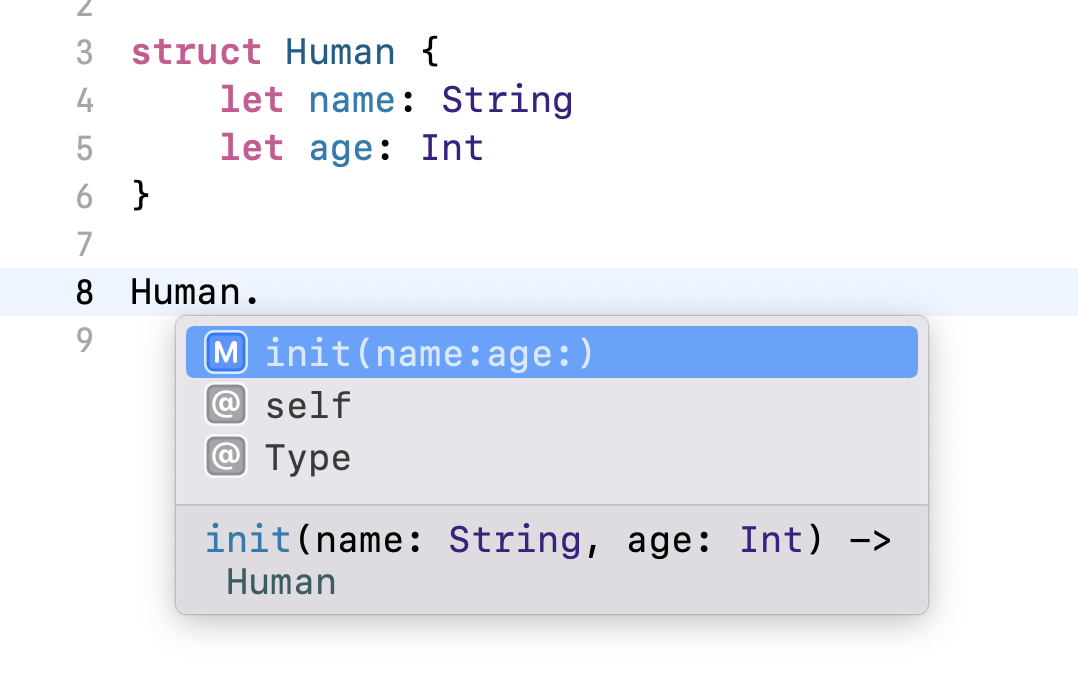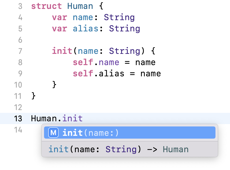 Human.init(name: "Sodeul", age: 28, alias: "Deulso")