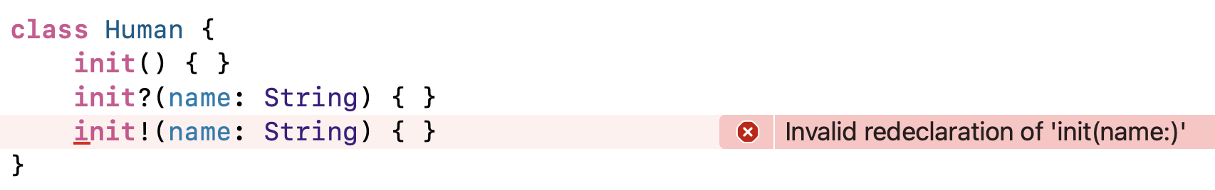 initializers의 오버로딩일 경우, failable / nonfailable을 구분하지 않음!!