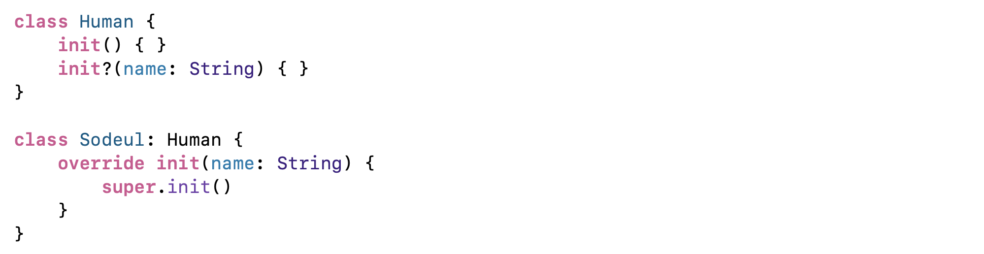 위처럼 슈퍼 클래스 Human에서 작성된 init?(name:),