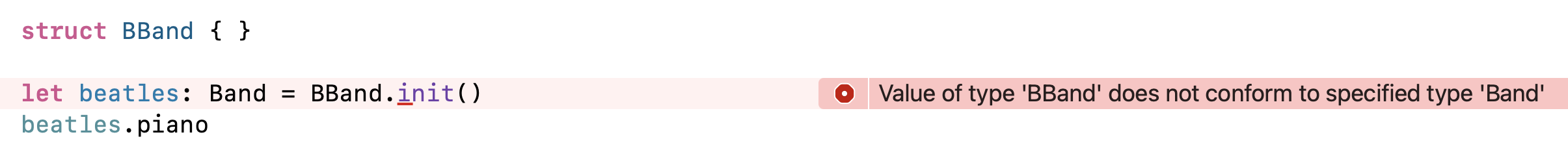 너 Band란 프로토콜 준수하네!? 그러면 반드시 piano란 프로퍼티 갖고 있겠지!?!?