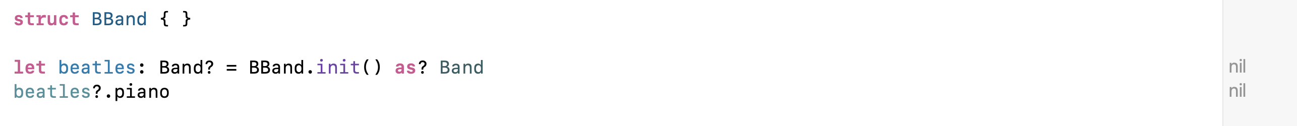 as?로 캐스팅 할 경우엔 해당 상수는 nil로 떨어지고,