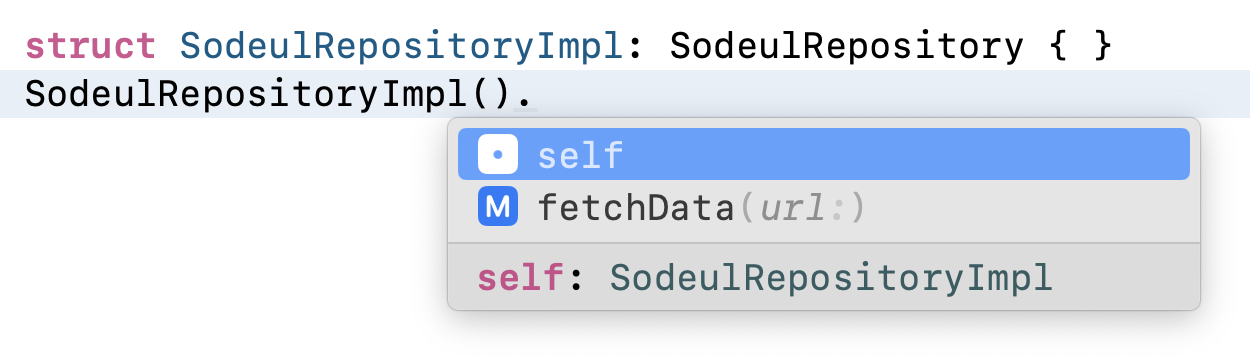 (제네릭 파라미터 'Self가 유추가 안 되셈)