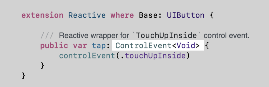 다만, ControlEvent<Void> 타입이 내부적으로 ObservableType을 따르기 때문에