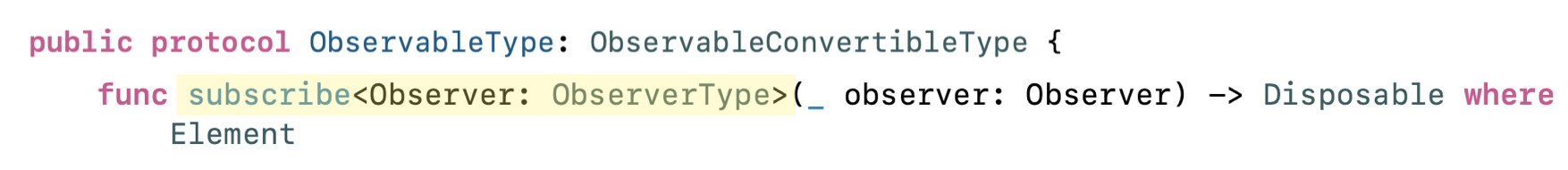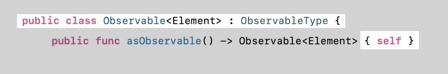 ObservableType 프로토콜에 extension으로 정의되어 있지만 (프로토콜에는 선언 x)