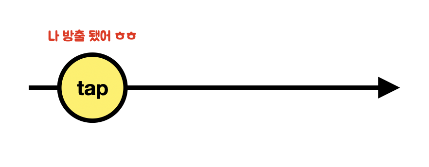 button.rx.tap 까지 했을 땐 해당 tap event에 대한 Observable 타입이 반환되는 것이 아니라,