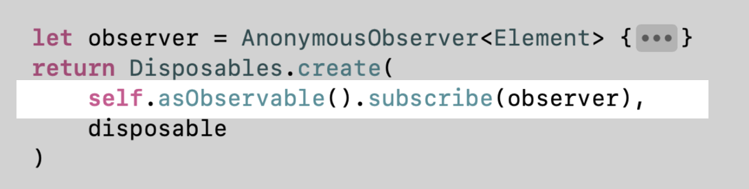 observer 자체를 파라미터로 넘기는 subscribe(_:) 메서드를 호출하는 것을 볼 수 있는데,