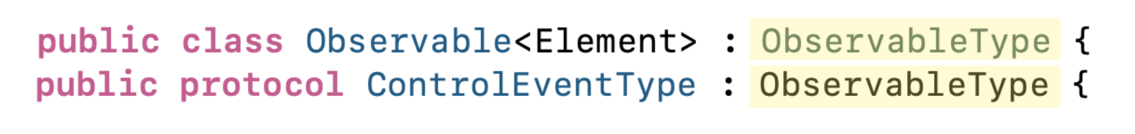 이 ControlEventType이란 프로토콜은 ObservableType이란 프로토콜을 따르고 있음!