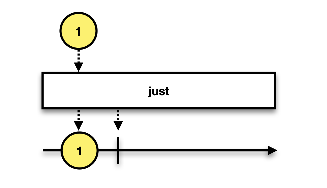 이때 just는 단 한 개의 항목(위에서는 Int형 타입의 1)만 파라미터로 넘겨줄 수 있음!!