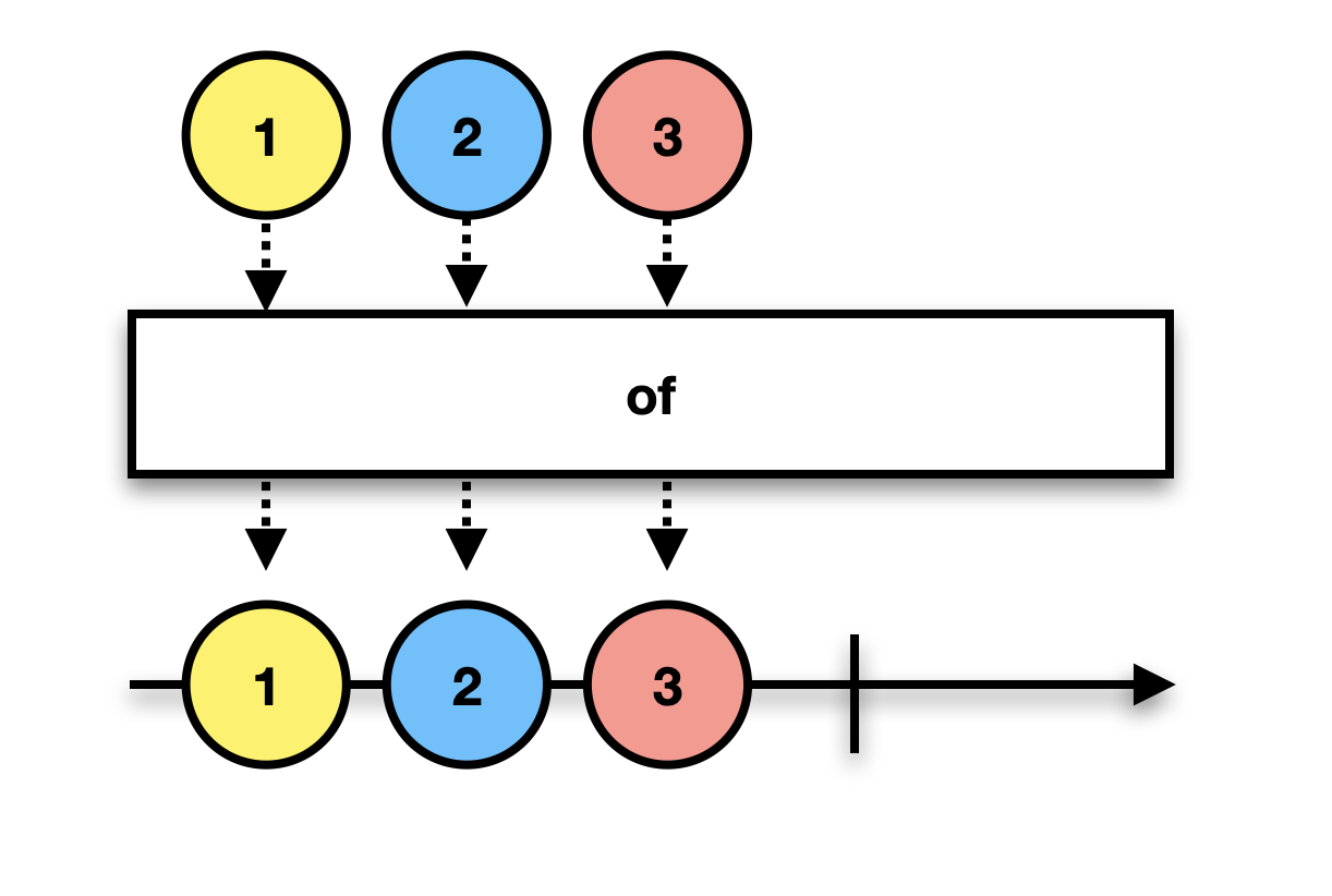 위처럼 observable을 생성할 때 of라는 메서드를 사용할 수 있는데,
