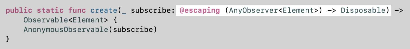위처럼 "Observer를 파라미터로 받고, Disposable을 반환하는 클로저"를