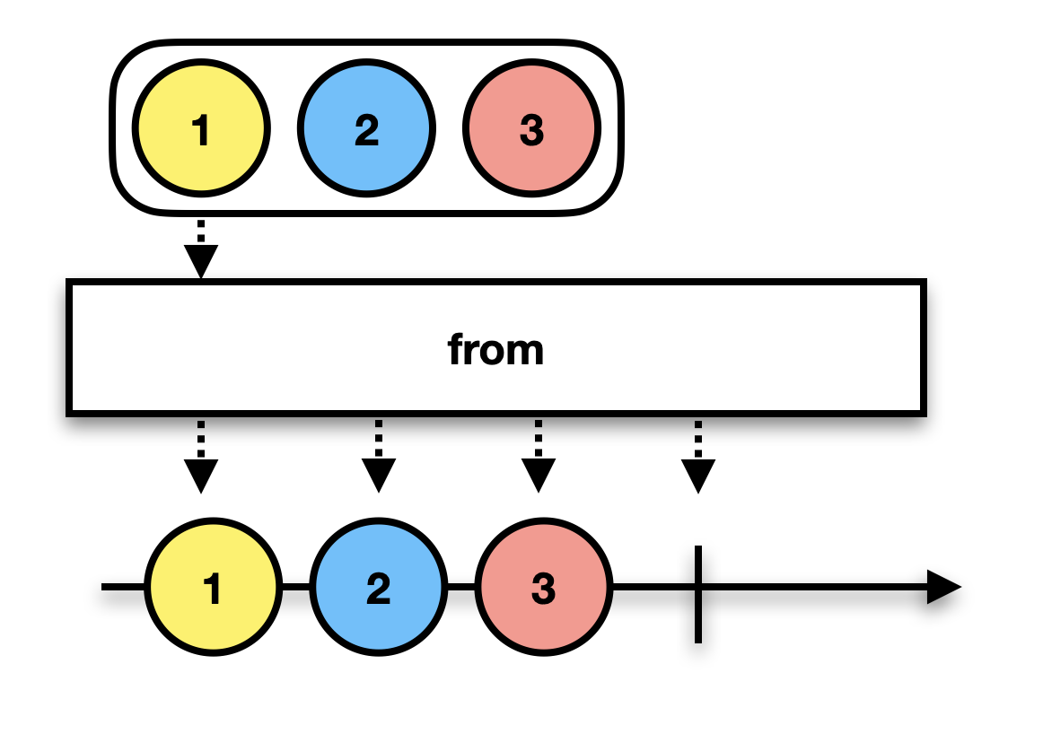 파라미터로 보낸 배열의 Element들이 순서대로 하나씩 방출되는 것을 볼 수 있음!!!ㅎㅎ