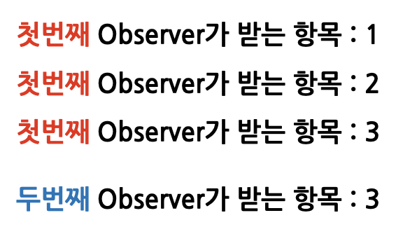 이렇게 두 Observer가 받는 값이 서로 다름!!!