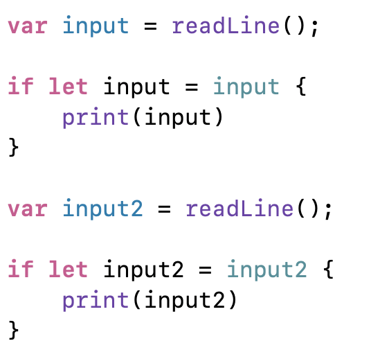 먼저, Swift에서 input을 받는 것은 다음 메서드를 사용함