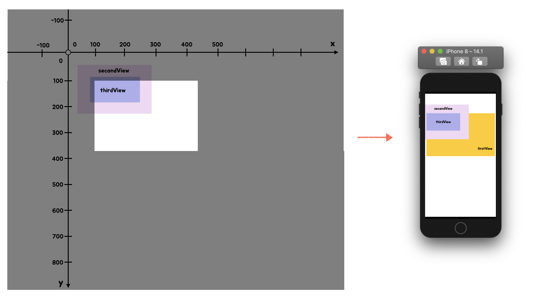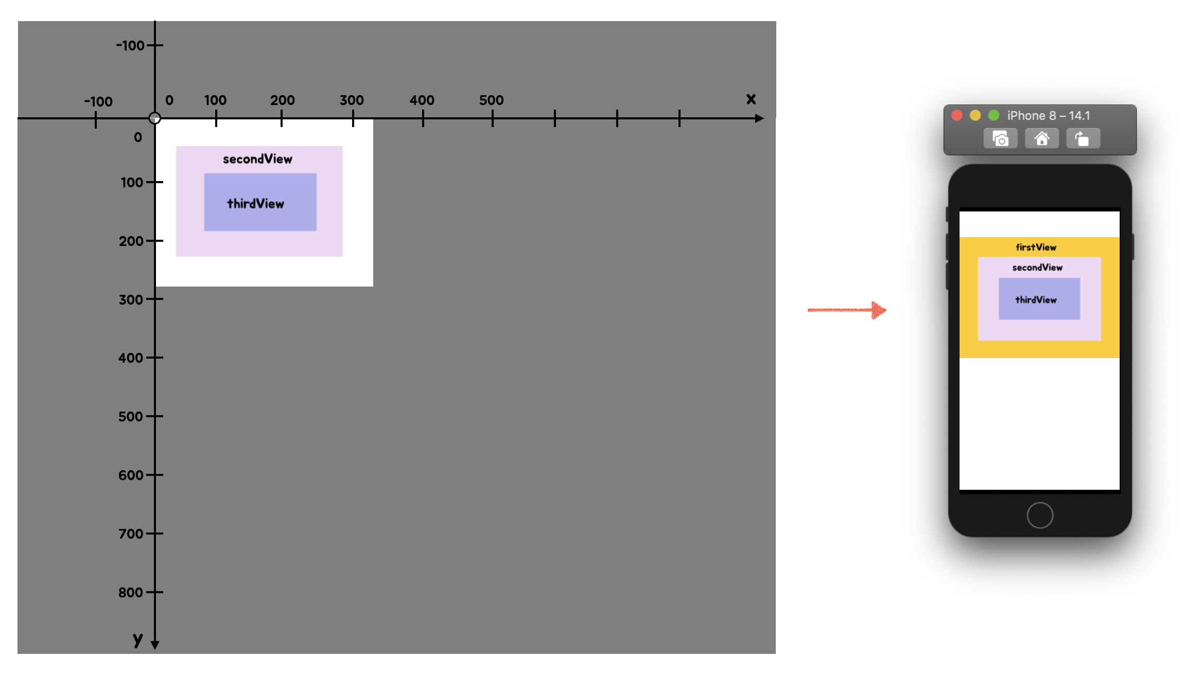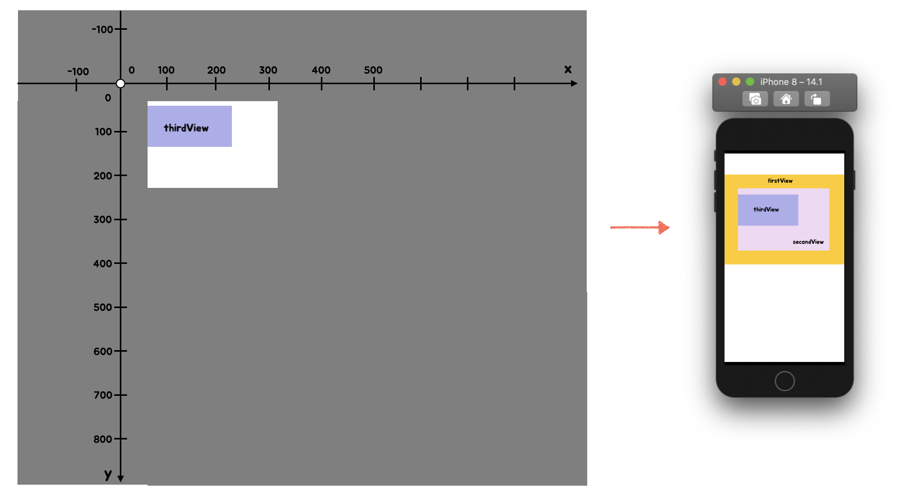 왜냐면 thirdView는 Super View인 secondView의 좌표계에서 계산 되니까!