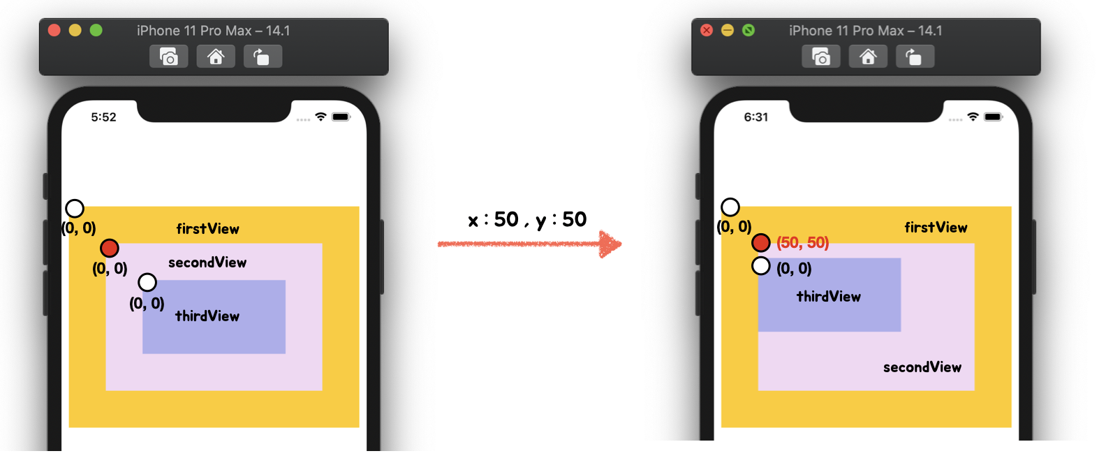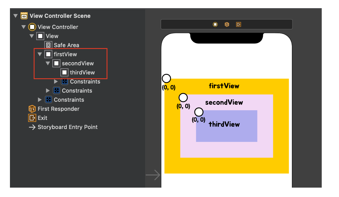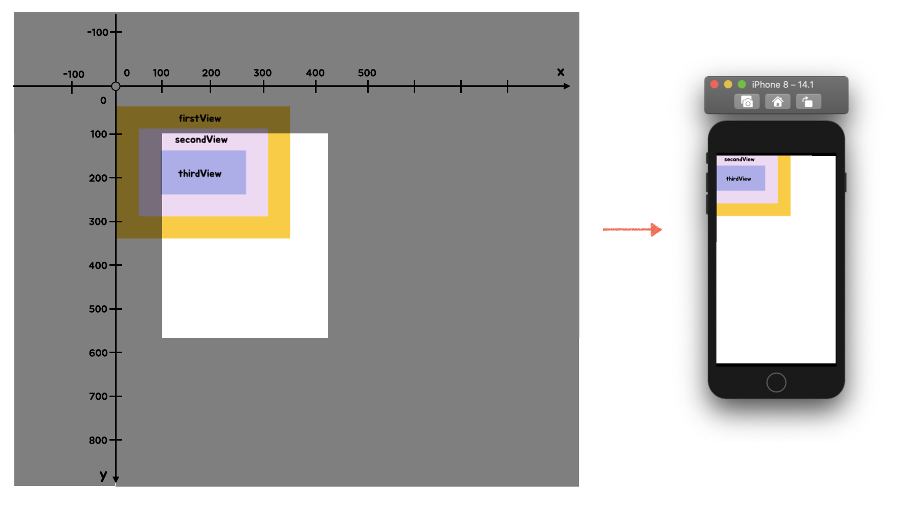 왜냐면 thirdView는 Super View인 secondView의 좌표계에서 계산 되니까!