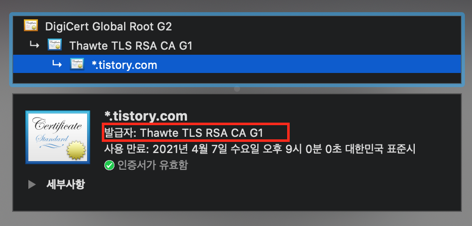 그럼 티스토리의 인증서를 한번 봐봐볼까요?