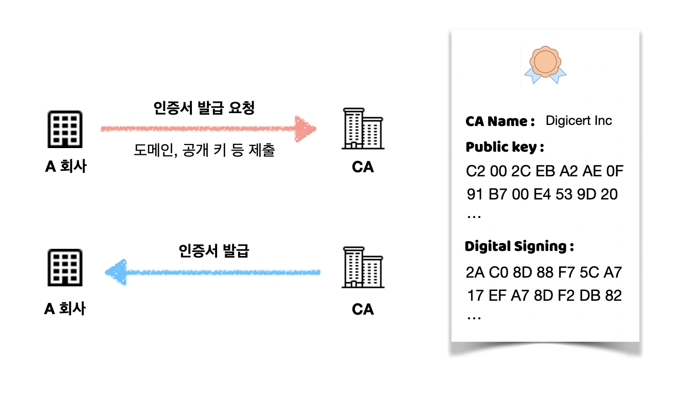 ① 서버 : 야 우리 믿을 수 있는 서버라고 인증서 발급 받자!