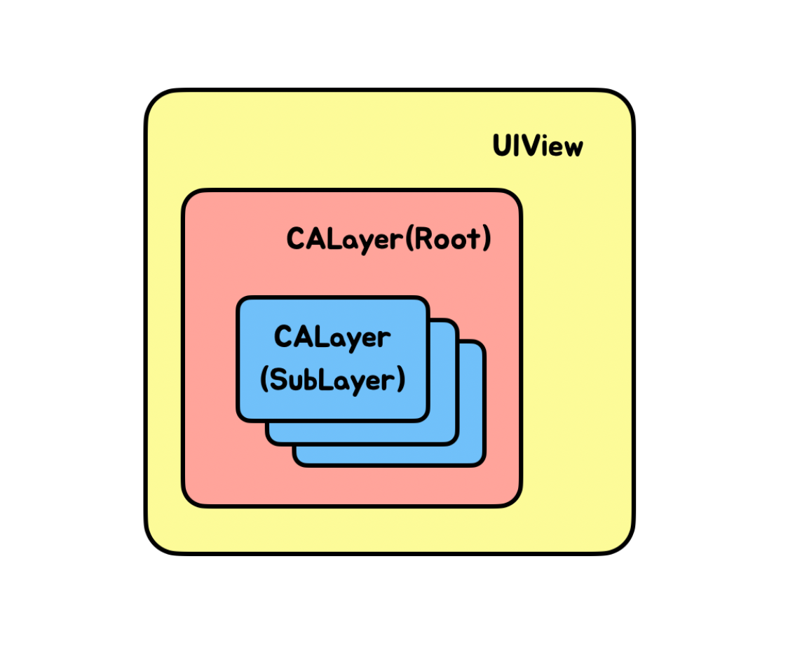 UIView의 SubView는 UIView의 CALayer(Root) 위에 얹혀지는 것이다