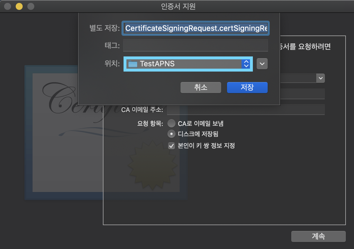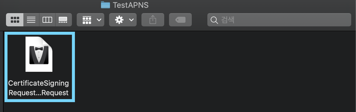 그럼 해당 경로에 certSigningRequest 형식의 파일이 뙇!