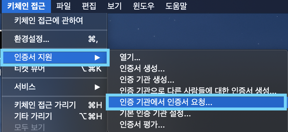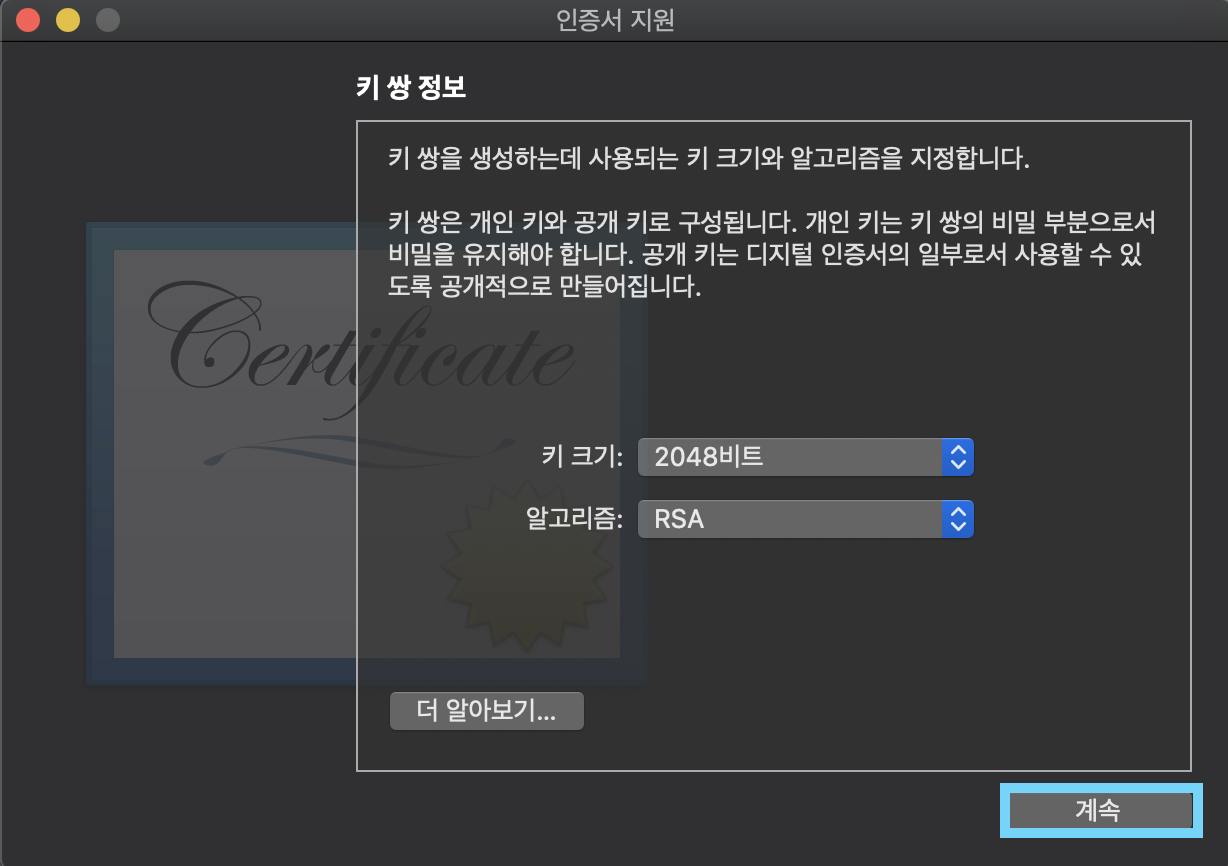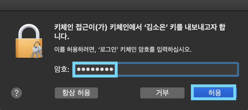 다시 아까 그 개인 인증서 키체인으로 돌아가서