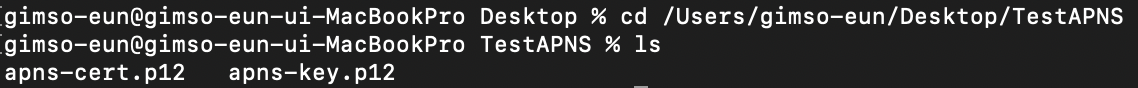 아까 apns-cert.p12, apns-key.p12 두 파일이 저장되어 있는 위치로 들어감