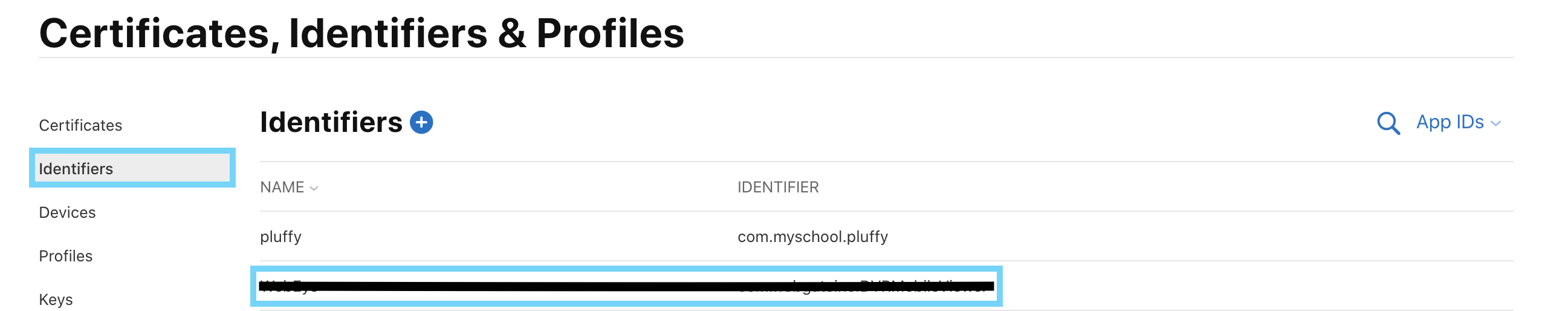 왼쪽 탭 중에 Identifiers를 선택하고 APNs를 발급받고 싶은 App 아이디를 클릭해주셈