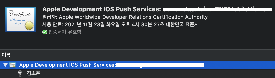 이런 IOS Push Services라는 인증서가 키체인에 생기고,